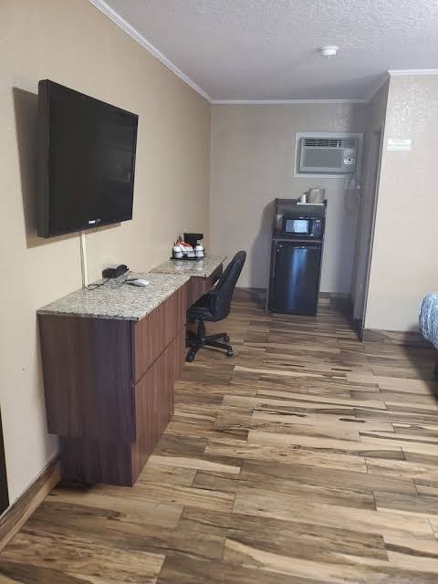 This place is definitely more than what you pay for. I was expecting a 1* or 2* place based on the price but the service and room was more in line with that of a 3.5* hotel. Room was recently remodeled and clean. The exterior looks like an older roadside motel but that isn't a bad thing as it's what is on the inside that counts. I wanted to give 5* but the pillows were lifelessly flat and the mattress felt old, like they had spent all the money on the aesthetics and ran out before they could replace them. Don't know that I'll be back in the area again but I wouldn't hesitate to stay here, even with my kids it felt that safe and quiet.